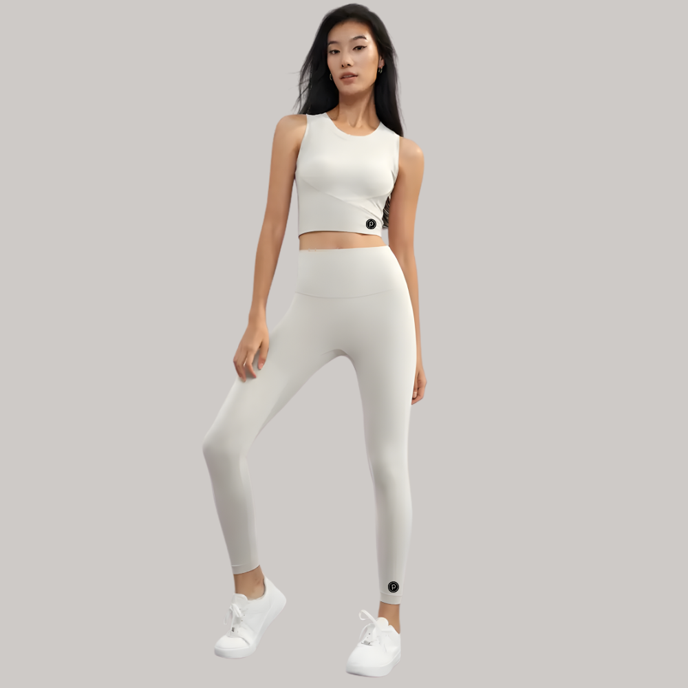 This set features a chic ribbed tank top and high-waisted leggings, designed for maximum comfort and support during any workout.
